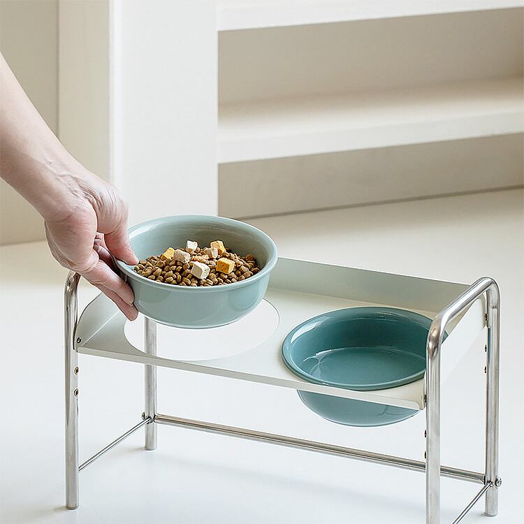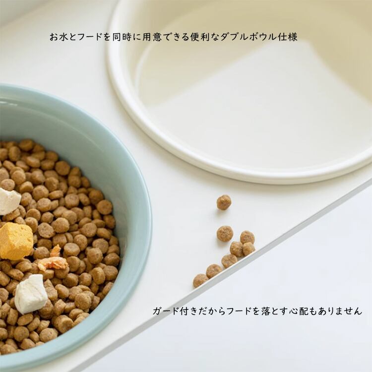 お水とフードを同時に用意できる便利なダブルボウル仕様です。本体とボウルは簡単に取り外すことができて、洗いやすく衛生面でも安心。
