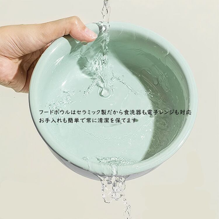 フードボウルはセラミック製なので、食洗器も電子レンジも対応お手入れも簡単で常に清潔を保てます。