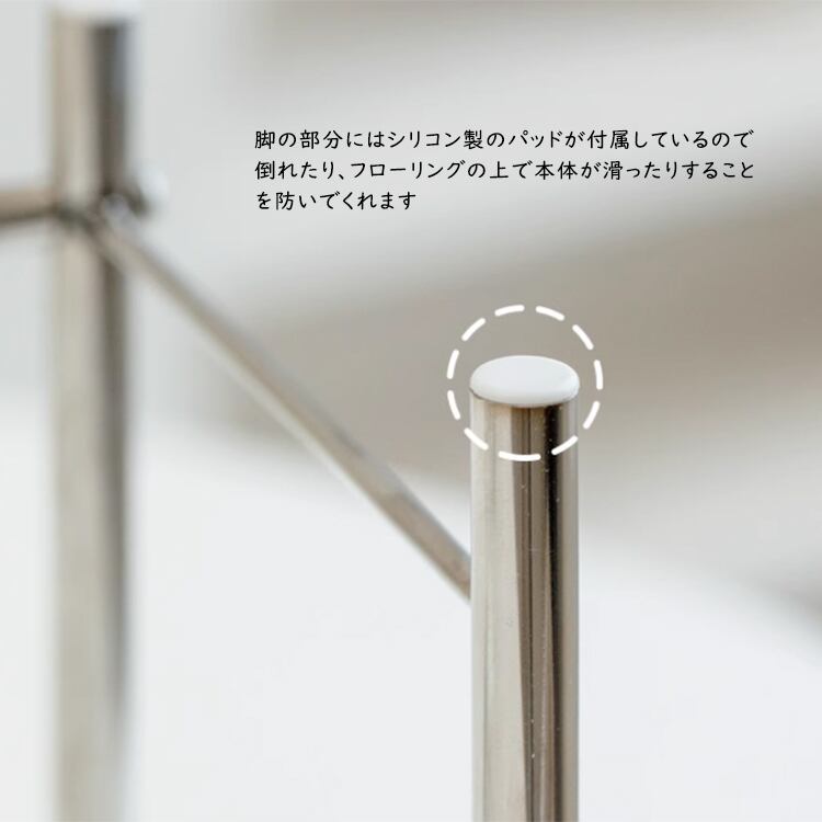 脚の部分にはシリコン製のパッドが付属しているので倒れたり、フローリングの上で本体が滑ったりすることを防いでくれます。