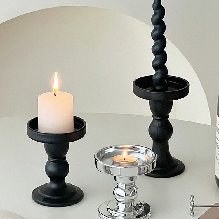 マットなブラックカラーがモダンなインテリアに馴染むキャンドルスタンド。