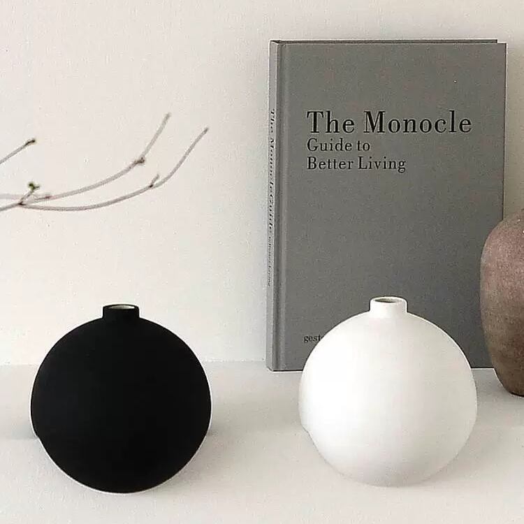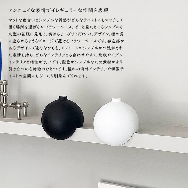 マットな色合いとシンプルな質感がどんなテイストにもマッチして、置く場所を選ばないフラワーベース。