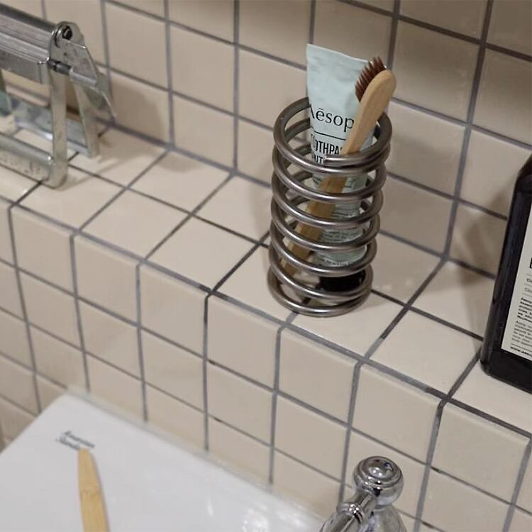 歯ブラシ立てやメイクブラシはもちろん、ペンなどの文房具やカトラリーを立てたりドライフラワーを飾るのもおすすめ。
