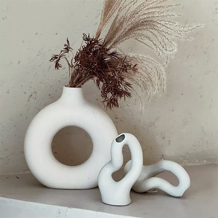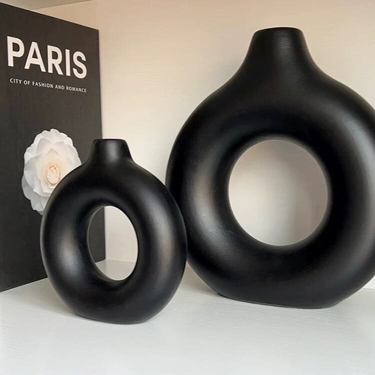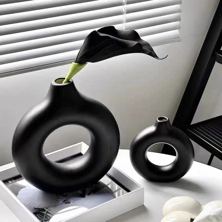 ドーナツをおもわせるユニークな形状のフラワーベースです。
