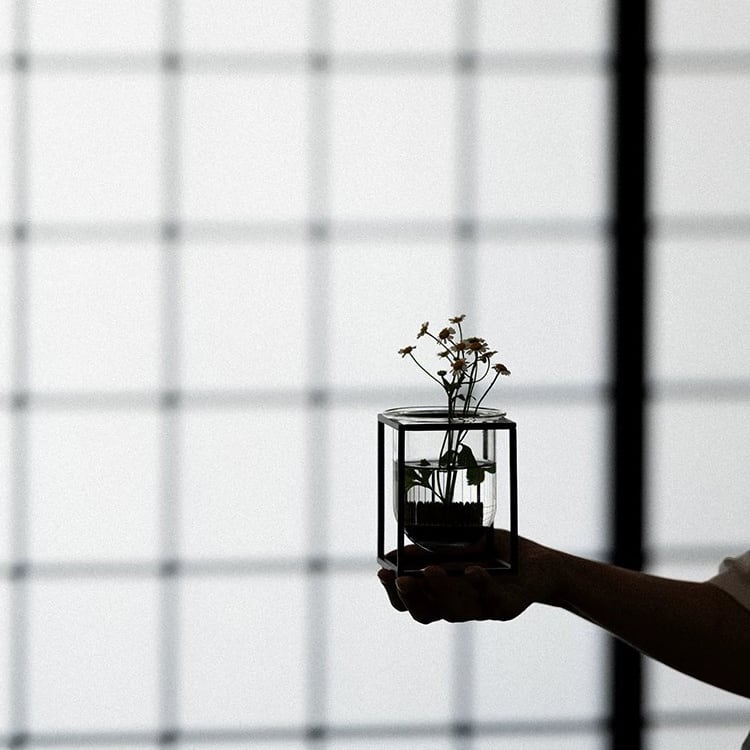 お庭で摘んだ草花や庭木の枝をカットしフラワーベースに挿し、さり気なく飾るだけでセンスアップ。