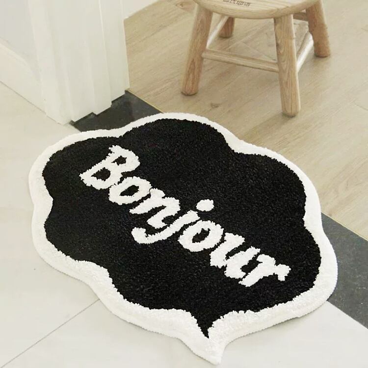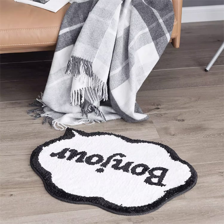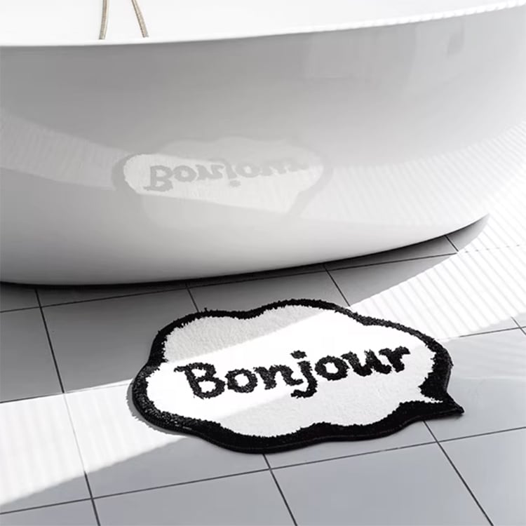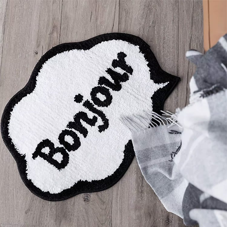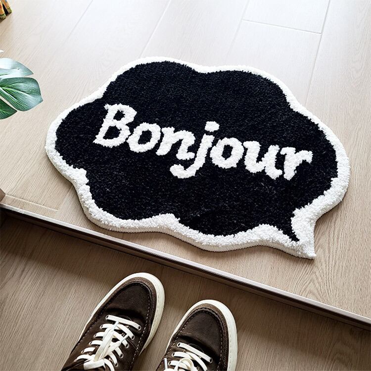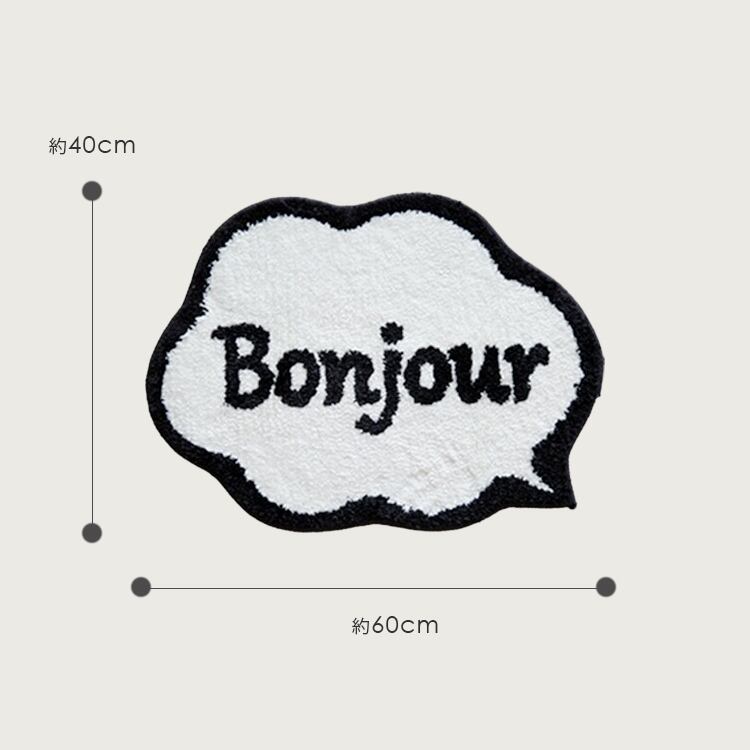 吹き出しデザインに「Bonjour」がお出むかえしてくれるロゴマットです。