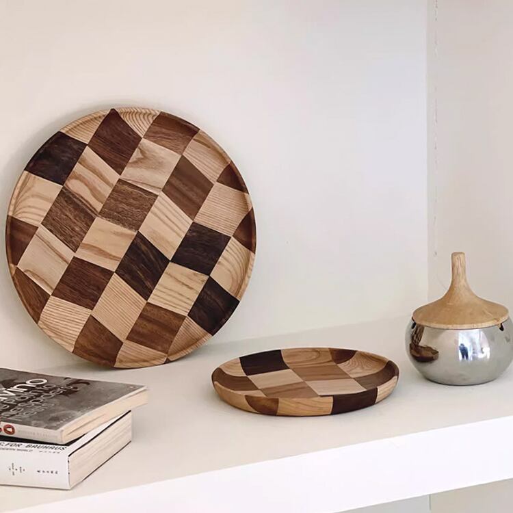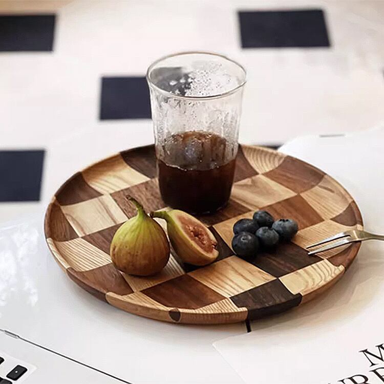 無垢材とアカシア材の木を使用し、チェック柄(市松模様)のようなデザインに組み合わせて仕上げました。