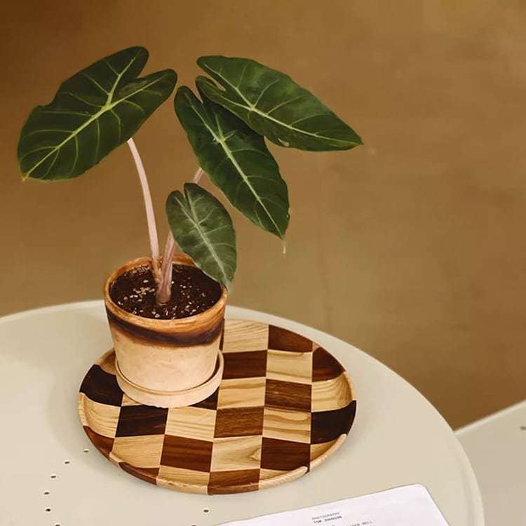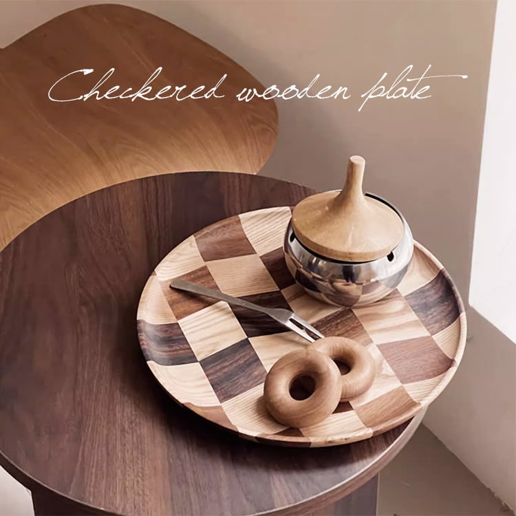 無垢材とアカシア材の木を使用し、チェック柄(市松模様)のようなデザインに組み合わせて仕上げました。