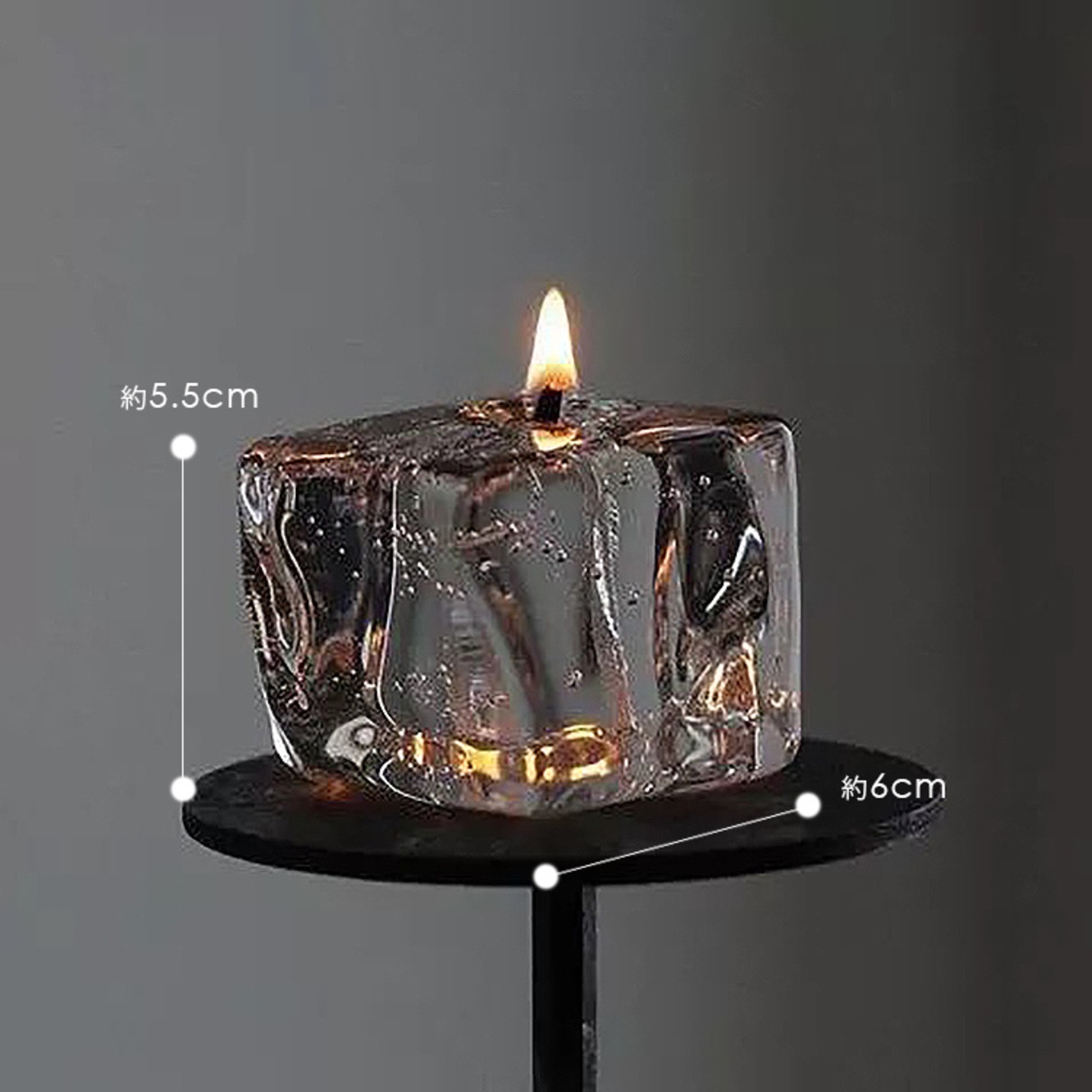 きれいな透明感で火を灯すと灯りがぬけて、揺らめく灯りを楽しみながら、ゆっくりと氷が溶けていくかのように変化していきます。
