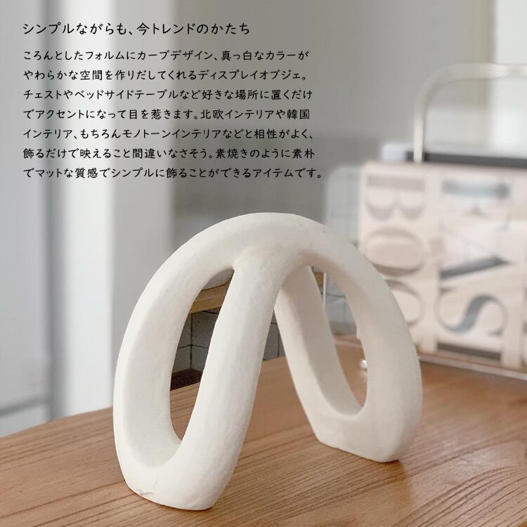 ころんとしたフォルムにカーブデザイン、真っ白なカラーがやわらかな空間を作りだしてくれるディスプレイオブジェ。