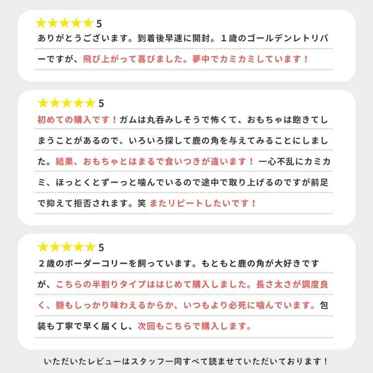 ● 来客時や、かまってあげることができない時に与えることで愛犬は鹿角に夢中!おとなしく一人遊びしてくれて助かります。