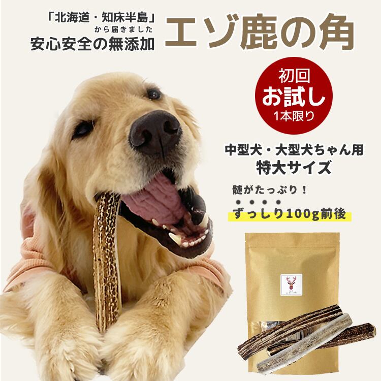 鹿の角 犬 【 お試し初回購入限定 】中型犬~大型犬 20cm~22cm ずっしり!100g前後(半割り)北海道 エゾ鹿 国産 無添加 | 愛犬用エゾ鹿の角 と インテリア雑貨店 gray dogs【公式】