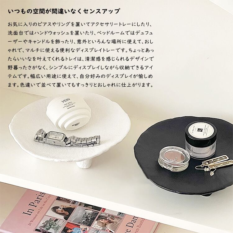 ちょっとあったらいいなを叶えてくれるトレイは、清潔感を感じられるデザインで、野暮ったさがなく、シンプルにディスプレイしながら収納できるアイテムです。