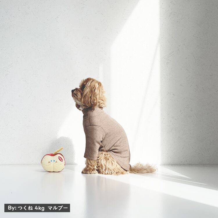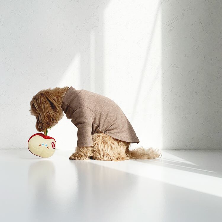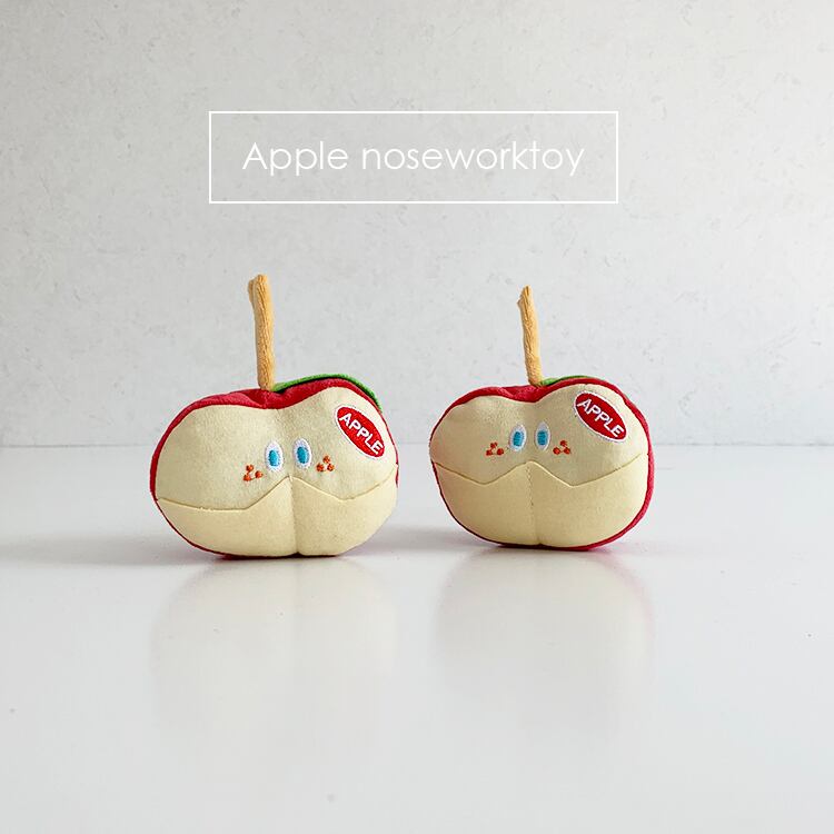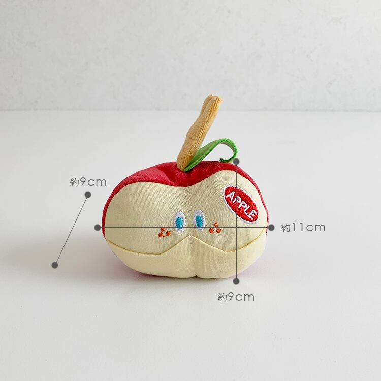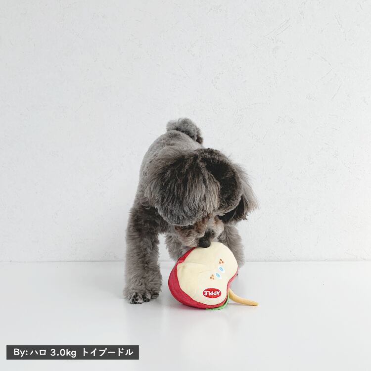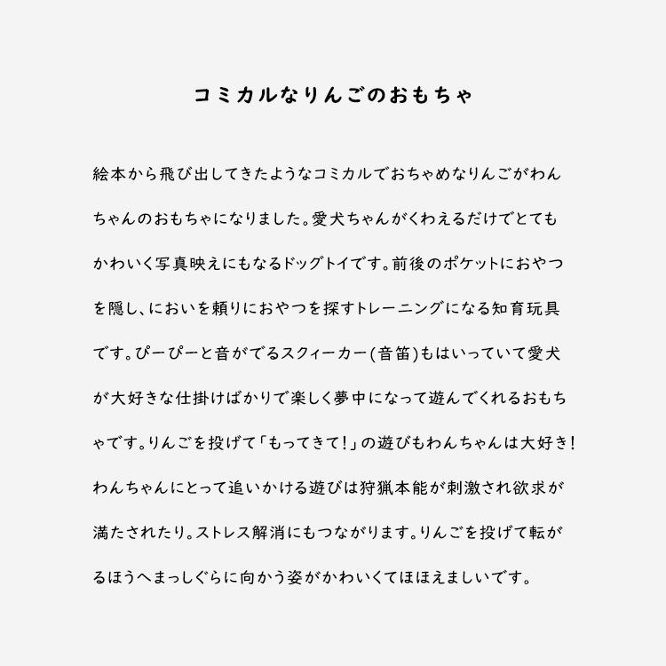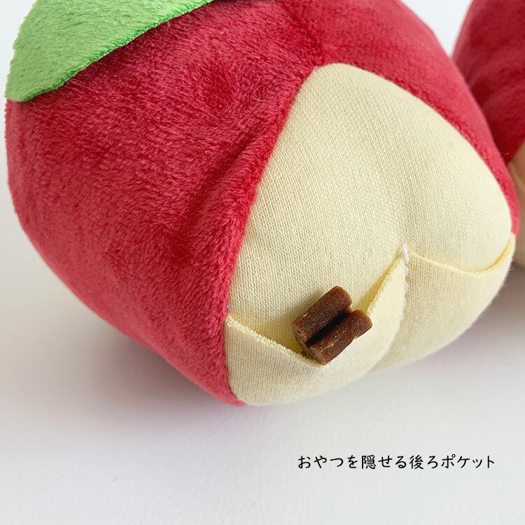 絵本から飛び出してきたようなコミカルでおちゃめなりんごが、わんちゃんのおもちゃになりました。