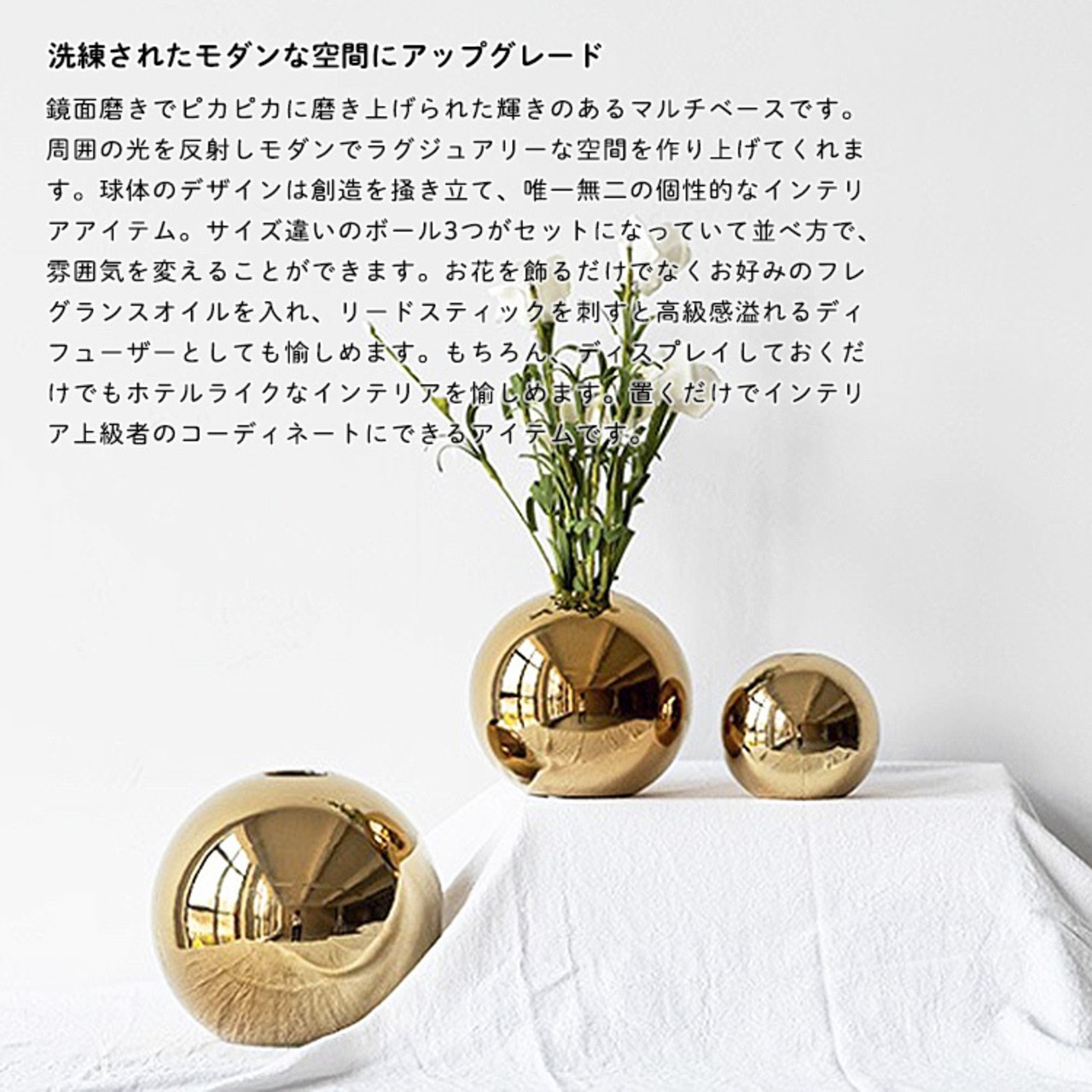 サイズ違いのボール3つがセットになっていて並べ方で雰囲気を変えることができます。
