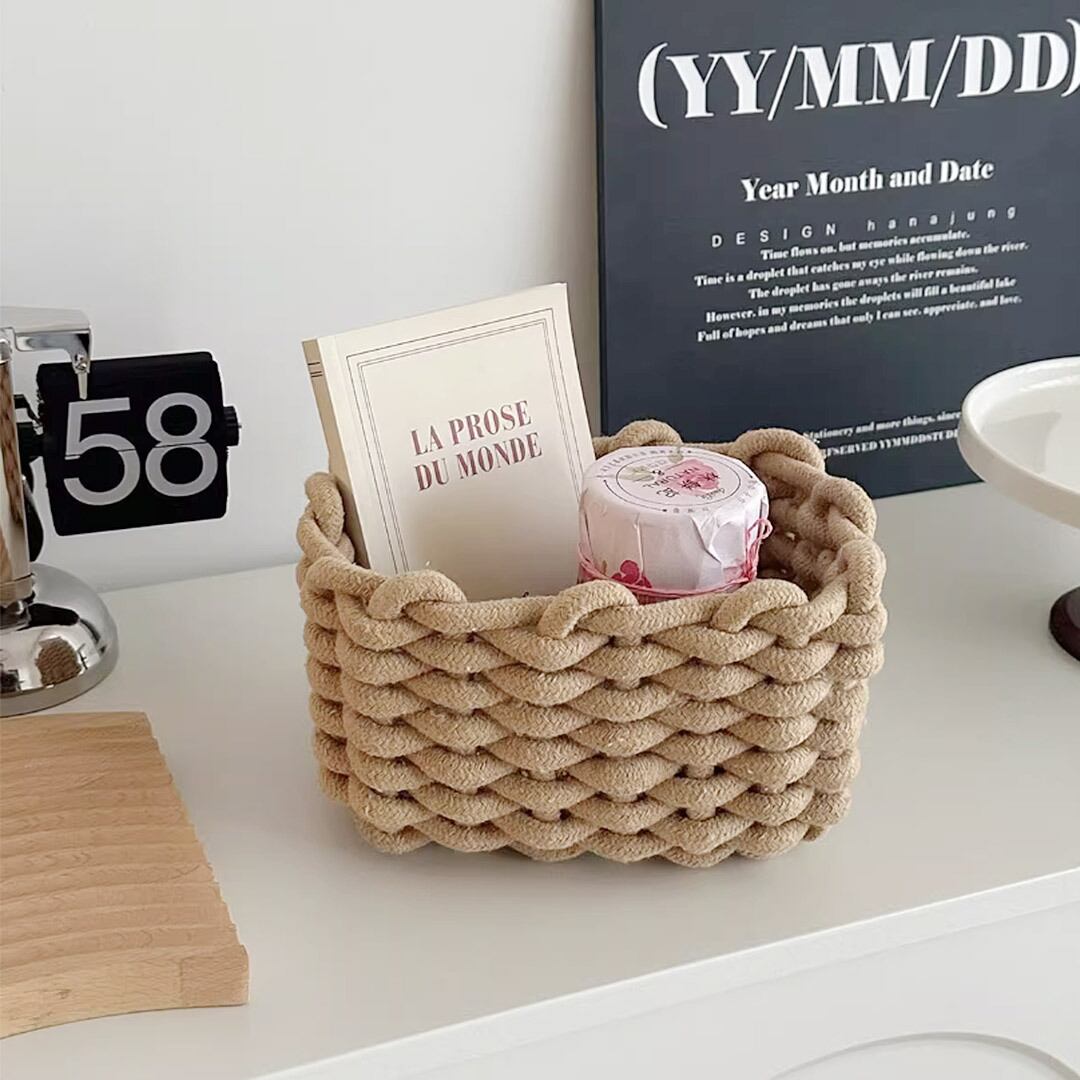 雑に入れてもおしゃれに見せてくれる、コットンロープで編み込んで作られたバスケットです。
