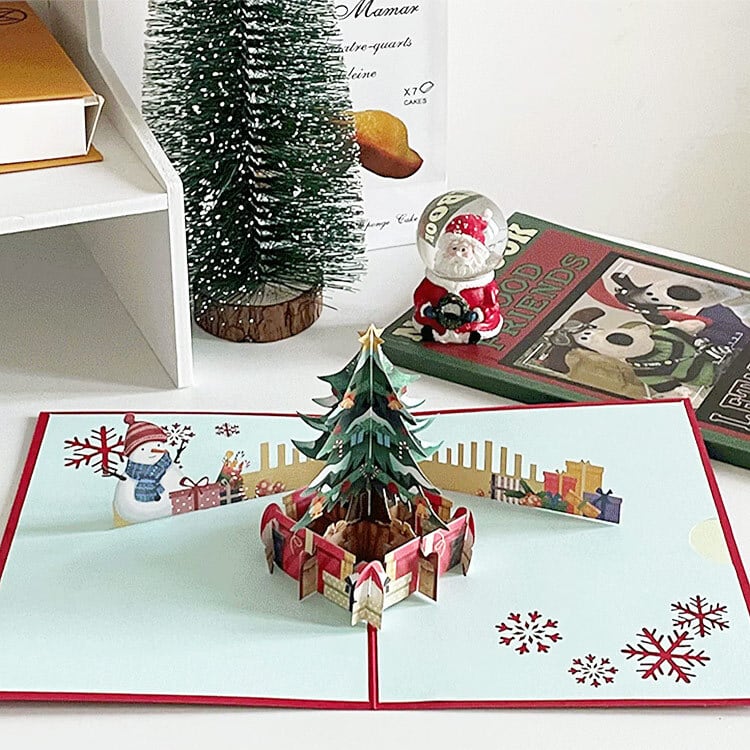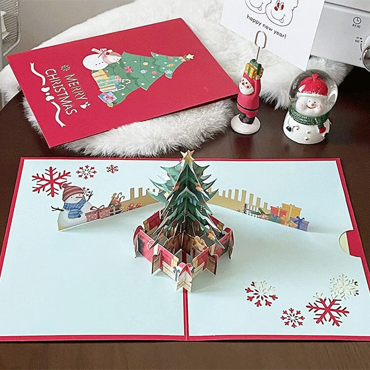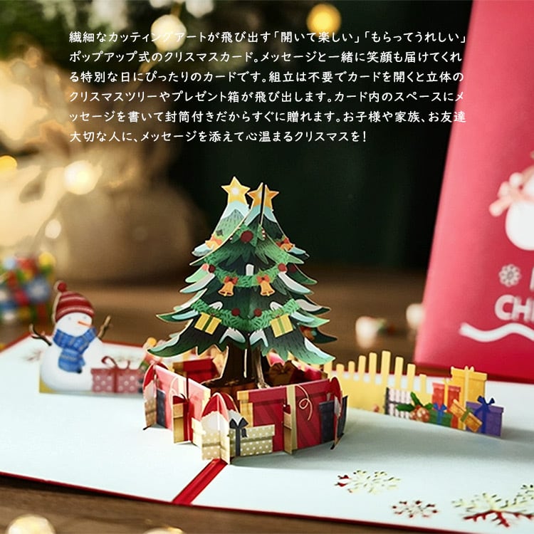 組立は不要でカードを開くと立体のクリスマスツリーやプレゼント箱が飛び出します。