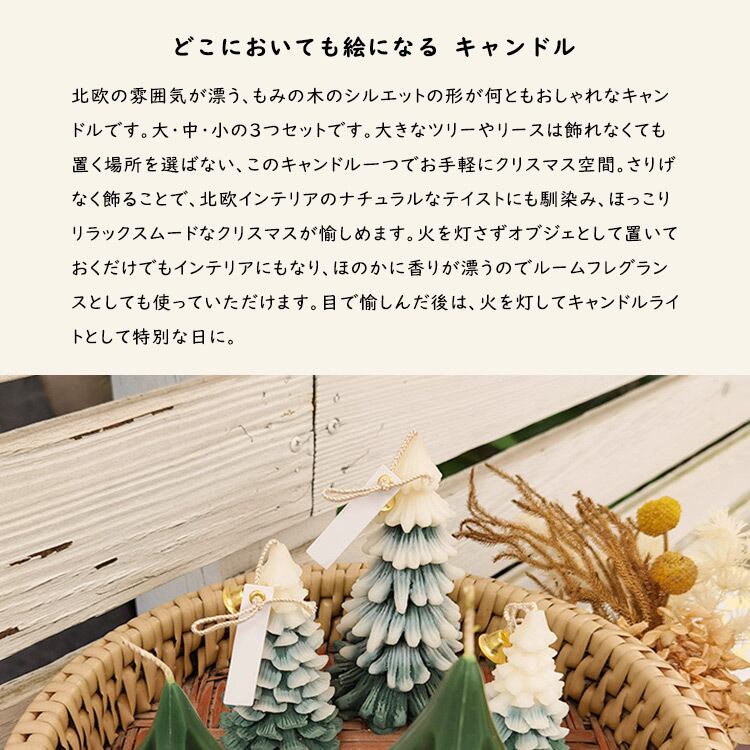 北欧の雰囲気が漂う、もみの木のシルエットの形が何ともおしゃれなキャンドルです。