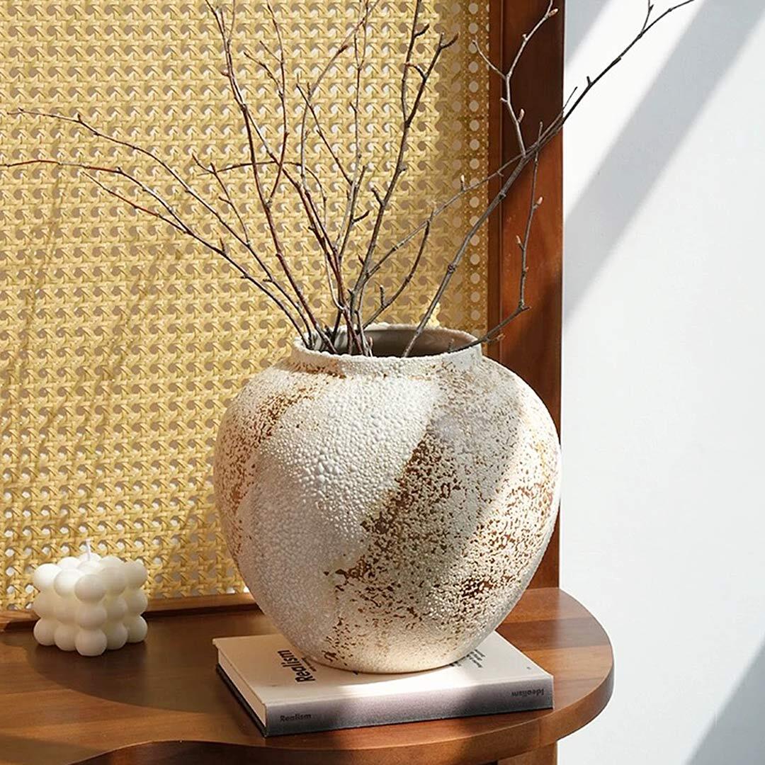 空間に存在感と趣を添えてくれそうなフラワーベース。