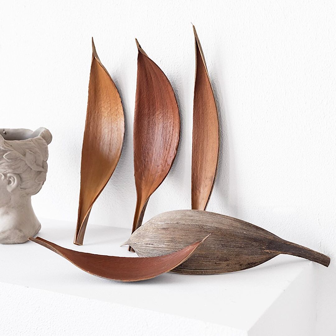 天然の大きなヤシの葉を一枚、まるごとそのままをオブジェにしたパームリーフトレイ。
