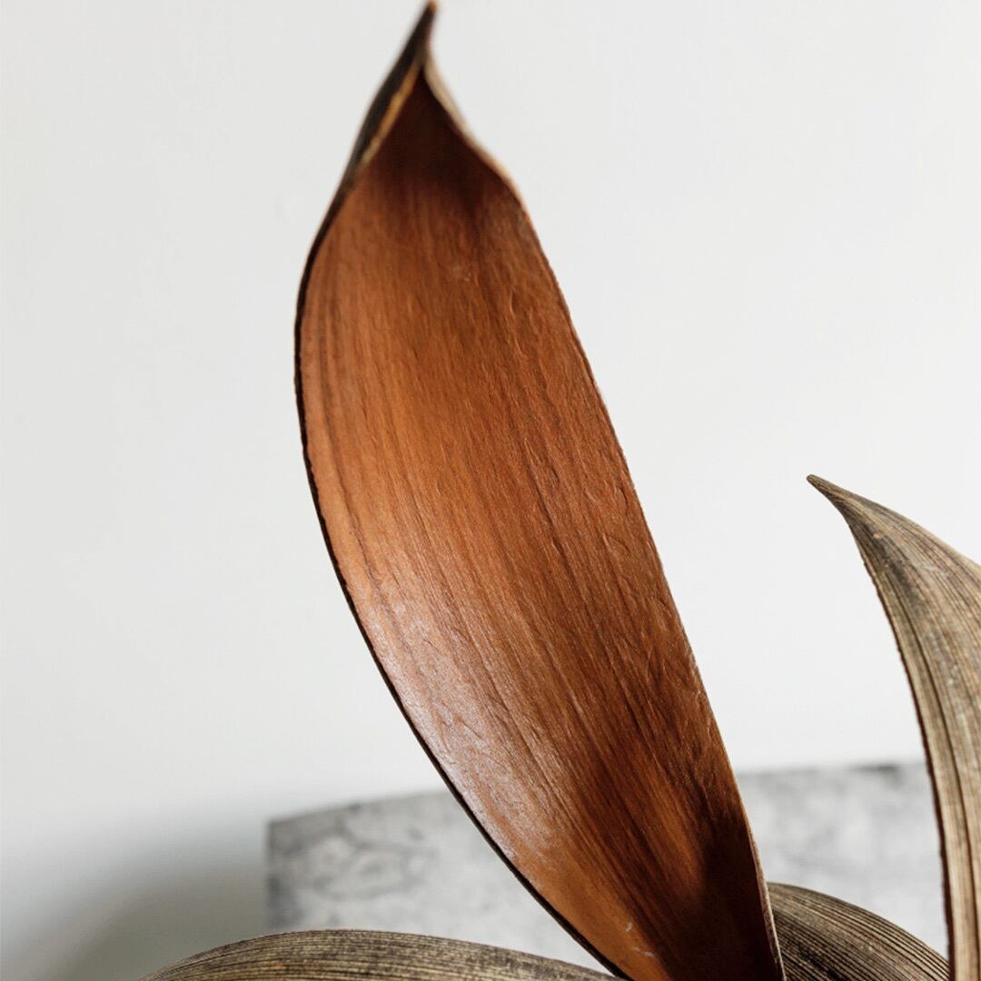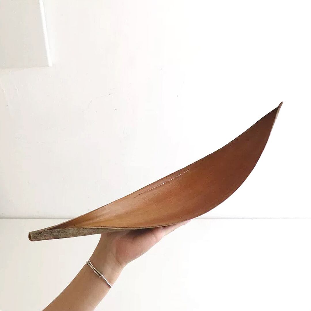 天然の大きなヤシの葉を一枚、まるごとそのままをオブジェにしたパームリーフトレイ。