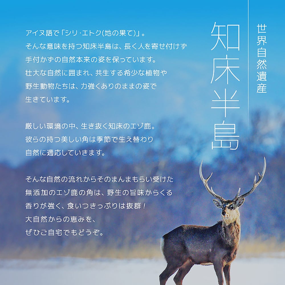 世界自然遺産として登録された『北海道・知床半島』豊かな自然に育まれている知床から届いた「エゾ鹿の角」を