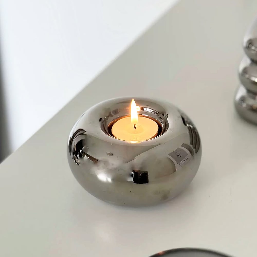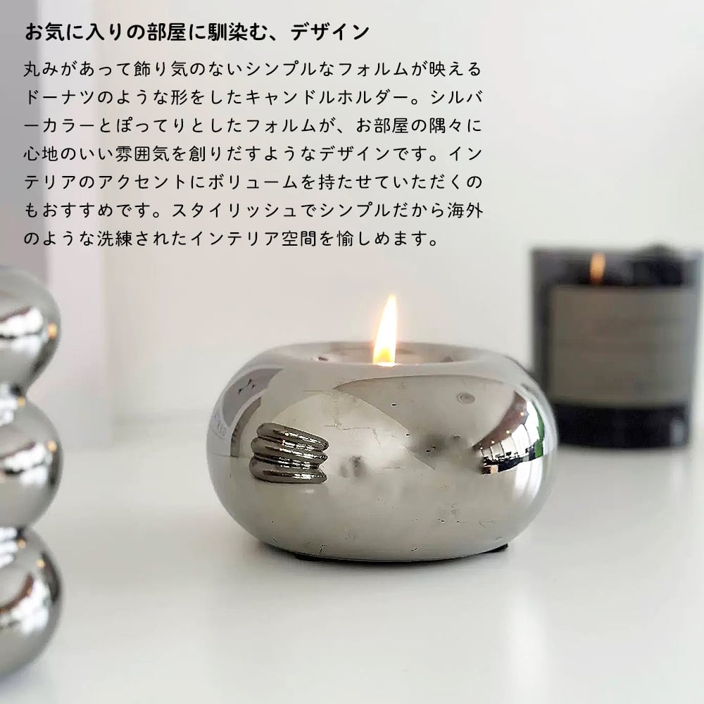 丸みがあって飾り気のないシンプルなフォルムが映えるドーナツのような形をしたキャンドルホルダー。